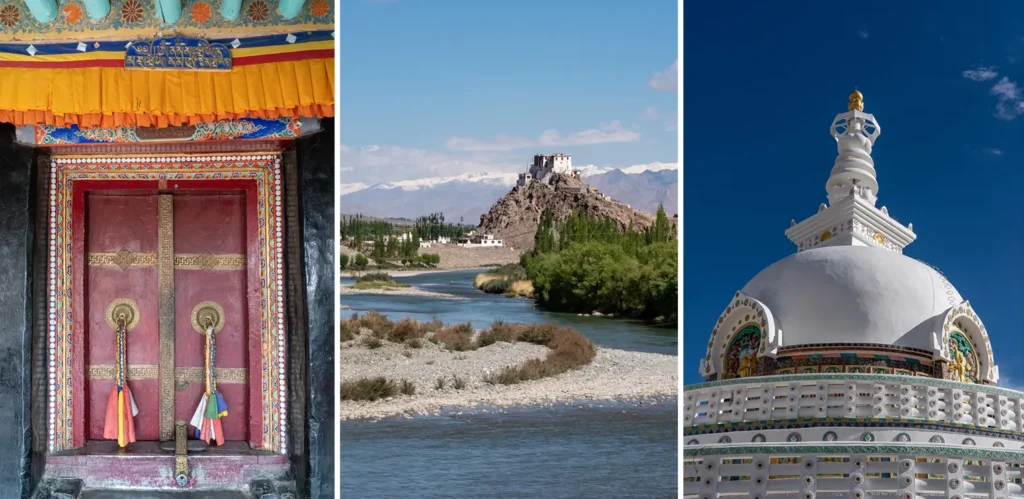 Por otro lado, Ladakh es el reino de las altas montañas y los desiertos áridos. Aquí, la capital Leh te conecta con una cultura tibetana profundamente espiritual, mientras que el Valle de Nubra te sorprenderá con sus dunas de arena rodeadas por picos nevados. El Lago Pangong, famoso por sus aguas turquesas que cambian de color según la luz, hipnotiza al viajero, que se queda admirando su belleza.
