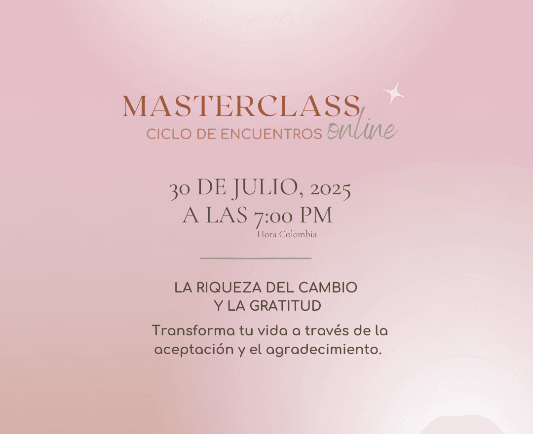 El verdadero cambio requiere disciplina, dedicación y la disposición de aprender nueva información. No es un proceso instantáneo, pero con el compromiso adecuado, los resultados son poderosos. Te invito a ser parte de estos encuentros durante los próximos meses. Puedes elegir las fechas y los temas que más resuenen contigo y en los que desees trabajar y si quieres trabajar aún más en tí, te invito para que te regales el cliclo completo de una clase al mes. Además, todas las Masterclass estarán grabadas y disponibles por tres meses, para que las puedas volver a ver en el momento que prefieras, a tu ritmo. ¡Este es el momento perfecto para abrirte al cambio y transformar tu vida!