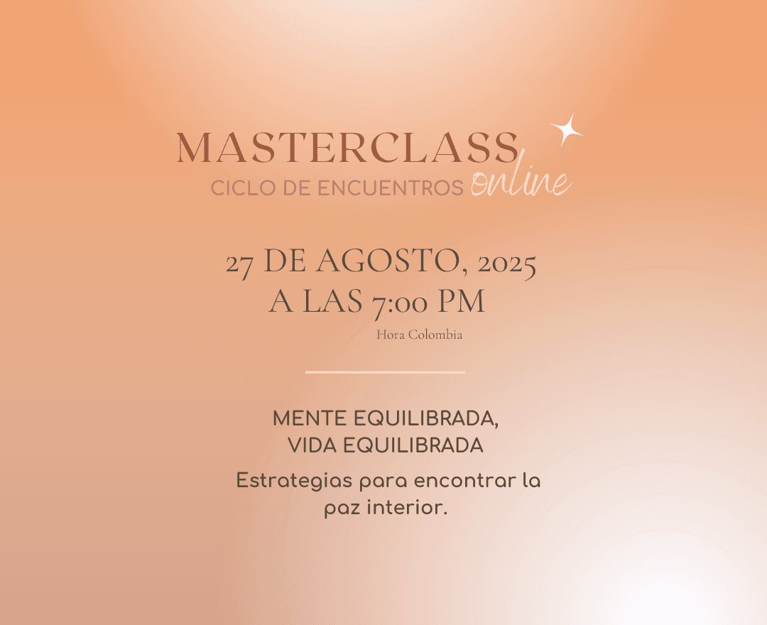 Estas Masterclass surgen como respuesta a una pregunta que recibo constantemente al interactuar con diferentes personas en las redes sociales: ¿Cómo se puede vivir una vida en bienestar? ¿Qué has hecho tú para lograrlo? Tras reflexionar sobre estas inquietudes, decidí abordar una serie de temáticas que nos afectan en el día a día, temas que muchas veces nos superan y nos impiden encontrar ese equilibrio que tanto buscamos. En estas clases, exploraremos herramientas y enfoques prácticos que nos ayudarán a gestionar mejor nuestra salud mental, emocional y física, con el objetivo de crear una vida más plena, consciente y en bienestar.