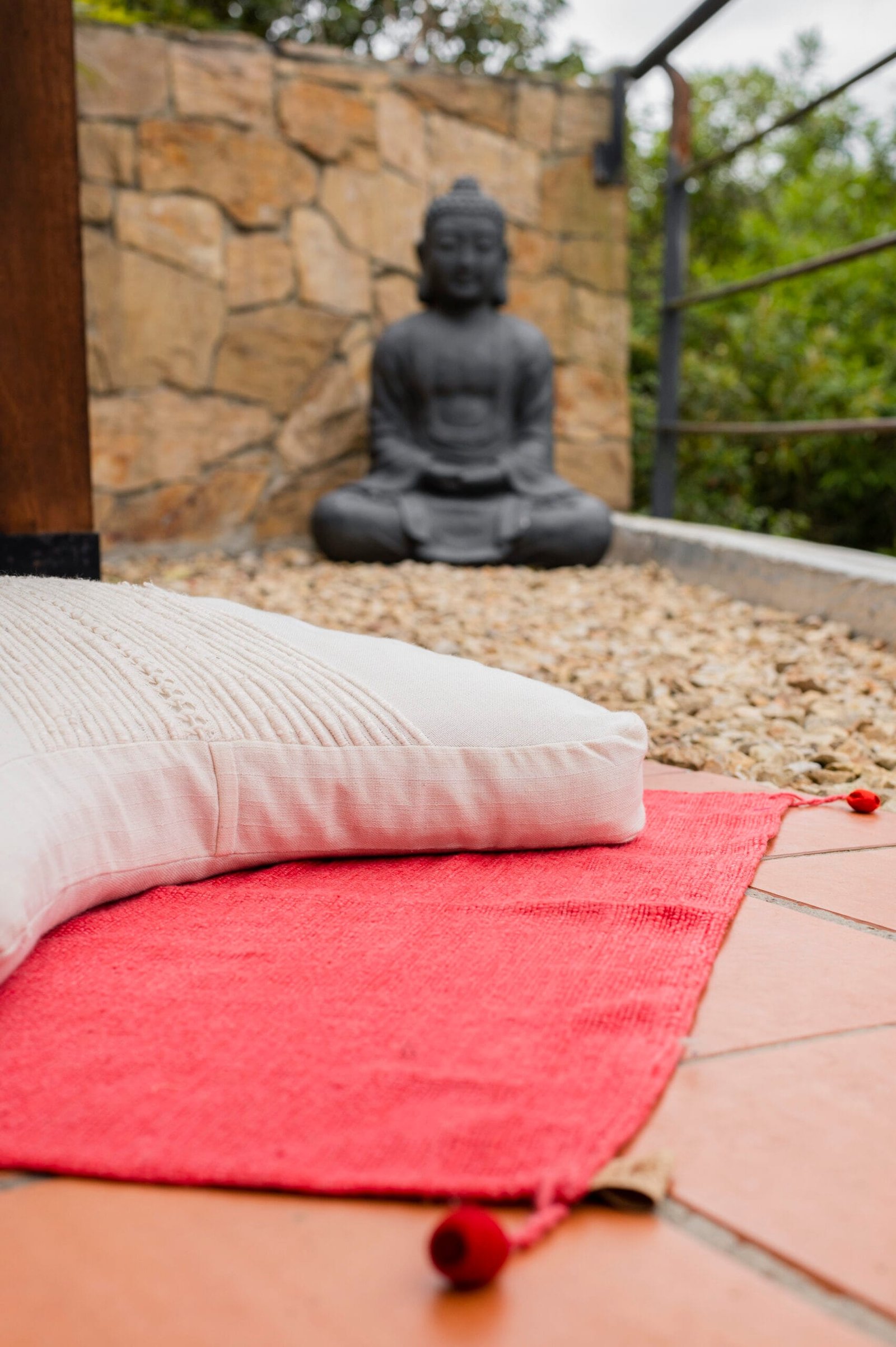 La cascarilla de arroz 100% natural se adapta al cuerpo del practicante para que cómodamente pueda meditar.